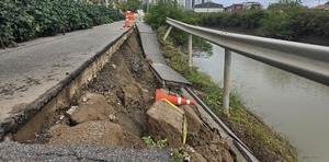 김포시 풍무동 일원 농수로 제방도로가 붕괴되면서 주민 불안이 커지고 있다. 원인은 지난 9월 집중호우로 인한 지반 약화와 중차량의 무단 통행, 그리고 하수관로 매설로 인한 구조적 취약성이 복합적으로 작용한 것으로 드러났다.27일 인천일보 취재와 한국농어촌공사 김포지사(이하 공사)에 따르면 지난 9월 15일 풍무동 484-5 일원 김포용수간선 제방도로 약 350m 구간에서 침하와 붕괴가 발생했다.해당 도로는 1970년 준공된 김포용수간선 농수로 제방 위에 조성됐으며, 2011년 김포시가 하수관로를 매설한 곳이다. 이번 사고로 200m