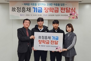 수원시 팔달구 매교동은 지난 4일 매교동 행정복지센터 대회의실에서 故 정흥채 장학금 전달식을 개최했다.동 단체장과 지역 주민 등 20여명이 참석한 전달식에서는 수원고등학교 추천을 통해 선정한 학생 2명에게 장학금이 전달됐다.장학금을 수여받은 학생들은 경제적 어려움에도 불구하고 꾸준히 학업에 열정을 쏟아온 인재들이다.권영길 기금관리 자치위원회장은 “장학금을 통해 학생들이 더 큰 목표를 향해 나아가는 데 도움이 되길 바라며, 앞으로도 지원을 아끼지 않겠다”고 말했다.최선영 매교동장은 “우리 지역의 학생들이 더 큰 꿈을 이룰 수 있도록