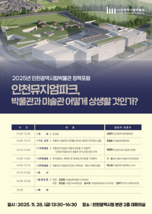 2028년 건립되는 인천뮤지엄파크 내 박물관과 미술관의 상생 방안을 모색하기 위해 전문가들이 머리를 맞댄다.인천시립박물관은 오는 28일 시청 대회의실에서 ‘인천뮤지엄파크, 박물관과 미술관 어떻게 상생할 것인가?’를 주제로 정책 포럼을 개최한다고 26일 밝혔다.인천뮤지엄파크는 하나의 공간 안에 박물관과 미술관이 공존하는 국내 최초 통합형 뮤지엄으로, 2016년 설립 계획 발표 이후 새로운 공공문화시설 모델로 주목받아왔다.이번 포럼은 박물관과 미술관이 상호 협력을 통해 공존 방안을 모색하고 그동안 추진 과정을 점검해 조직 운영과 전시