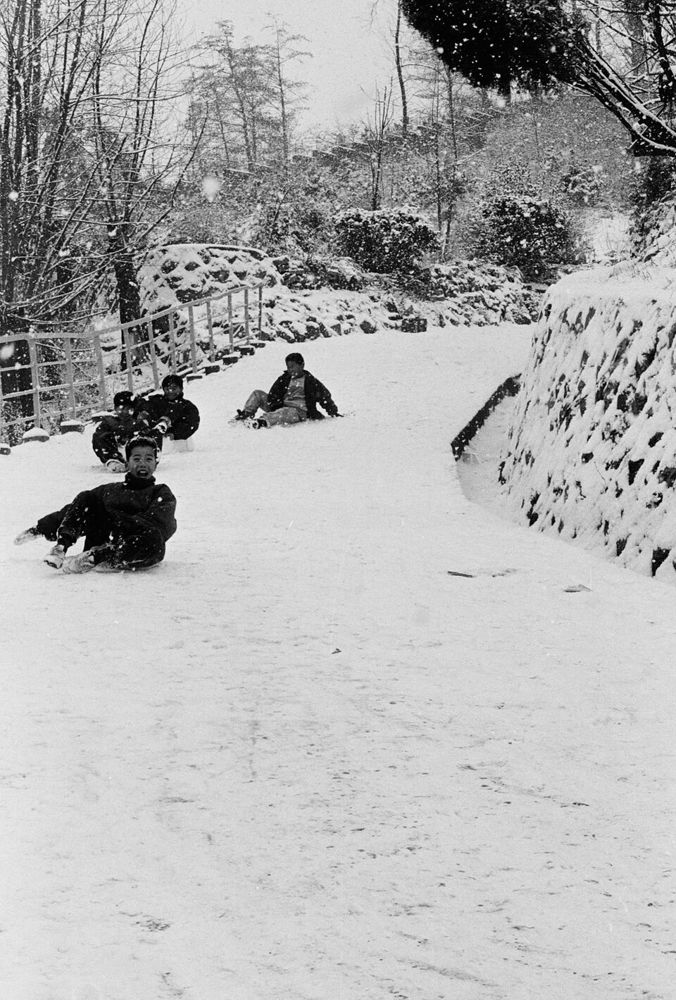 동네 천연 눈썰매장 야호. “연탄재 깔리기 전에 신나게 달리자”