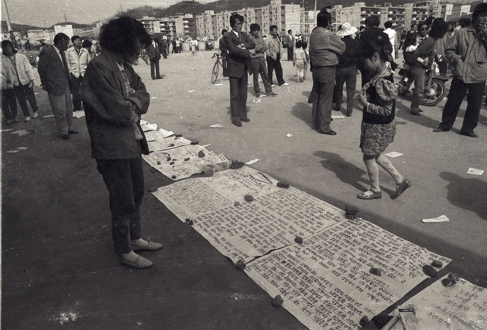SNS 없던 시절 땅 위의 대자보 모습이다.